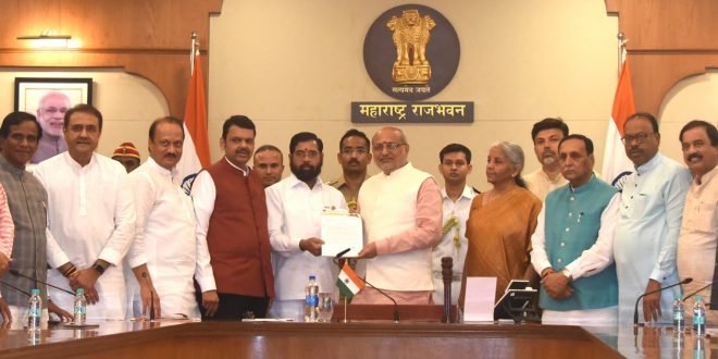राज्यातील संशयातीत बहुमतानंतर महायुतीतील सहभागी पक्ष असलेल्या काळजीवाहू मुख्यमंत्री एकनाथ शिंदे आणि त्यांचा शिवसेना पक्ष, अजित पवार आणि त्यांचा पक्ष राष्ट्रवादी काँग्रेस आणि भाजपाच्यावतीने देवेंद्र फडणवीस यांनी आज भाजपा विधिमंडळ पक्षाच्या नेतेपदी निवड झाल्यानंतर सत्ता स्थापनेचा दावा करण्यासाठी दुपारी ३ वाजता राजभवनावर जात राज्यपाल सी पी राधाकृष्णन यांची भेट घेतली. त्यानंतर राज्यपाल सी पी राधाकृष्णन यांनी महायुतीच्या नेत्यांना सत्ता स्थापनेचे निमंत्रण दिले.
