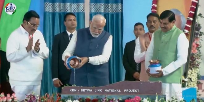 माजी पंतप्रधान अटलबिहारी वाजपेयी यांच्या १०० व्या जयंतीनिमित्त पंतप्रधान नरेंद्र मोदी यांनी बुधवारी (२५ डिसेंबर) केन-बेतवा रिव्हर लिंकिंग राष्ट्रीय प्रकल्पाची पायाभरणी केली.