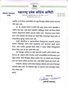 राज्यात सध्या जिल्हा परिषद व पंचायत समिती निवडणुकांसाठी आदर्श आचारसंहिता लागू आहे, असे असताना सत्ताधारी पक्षातील मंत्री जाणीवपूर्वक आणि उघडपणे या आचारसंहितेचे उल्लंघन करत असल्याचे गंभीर प्रकार समोर येत आहेत. उच्च व तंत्र शिक्षण मंत्री चंद्रकांत पाटील यांनी उमेदवारी अर्ज मागे घेण्याच्या अंतिम तारखेच्या पूर्वसंध्येला सांगली जिल्ह्यात झालेल्या एका सार्वजनिक कार्यक्रमात, “जिल्हा परिषद निवडणुकीत विरोधकांचा टिकाव लागणार नाही, वेळ आणि पैसा कशाला वाया घालवता, अर्ज मागे घ्या” असे विधान केले. हे विधान विरोधी पक्षांच्या उमेदवारांवर थेट दबाव टाकणारे असून निवडणूक प्रक्रियेला बाधा आणणारे आहे, याची तातडीने आणि गांभीर्याने दखल घेऊन चंद्रकांत पाटील यांच्यावर आदर्श आचारसंहितेचा भंग केल्याबद्दल गुन्हा दाखल करावा तसेच निवडणूक प्रक्रिया प्रभावित होऊ नये यासाठी त्यांना निवडणूक प्रचार सभा घेण्यास प्रतिबंध घालण्यात यावा, अशी मागणी काँग्रेस प्रदेशाध्यक्ष हर्षवर्धन सपकाळ यांनी केली.