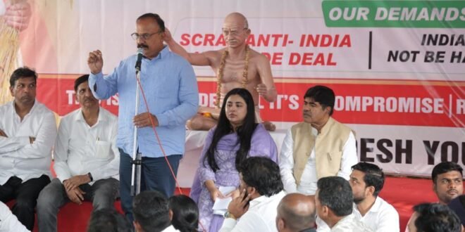 यावेळी हर्षवर्धन सपकाळ म्हणाले की, भारत हा कृषीप्रधान देश आहे पण भाजपाच्या राजवटीत देशातील अन्नदाता देशोधडीला लागला आहे. सत्तेत येण्यापूर्वी शेतकऱ्यांना दिलेली आश्वासने मोदी सरकारने पूर्ण केली नाहीत. शेतमालाला दुप्पट भाव तर मिळत नाहीच उलट शेतीसाठी लागणारा खर्च मात्र दुप्पट, तिप्पट वाढला आहे. नरेंद्र मोदींनी दबावाखाली अमेरिकेशी व्यापार करार केला असून ट्रम्पच्या धमकीला मोदी घाबरतात. या करारामुळे शेतकऱ्यांचे कंबरडे मोडले आहे. देशातील तरूण, कामगार, कष्टकरी, शेतकरी, सर्वांची नरेंद्र मोदी यांनी फसवणूक केली आहे. विकासाचा दावा करणारे मोदी सरकार देशाला विनाशाकडे घेऊन जात आहे.
