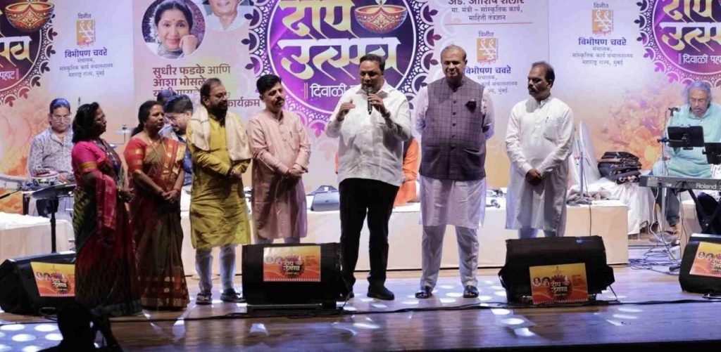 आशिष शेलार पुढे बोलताना म्हणाले की, सांस्कृतिक कार्य विभागाच्या सांस्कृतिक कार्य संचालनालय, मुंबई यांच्या वतीने दिवाळीच्या स्वागतासाठी “दीप उत्सव दिवाळी पहाट” हा बहारदार सांस्कृतिक कार्यक्रम कालिदास नाट्यगृह, मुलुंड येथे मोठ्या उत्साहात पार पडला. या कार्यक्रमात आशा भोसले व सुधीर फडके (बाबूजी) यांच्या अविस्मरणीय गीतांची स्वरमयी मैफल रंगली.