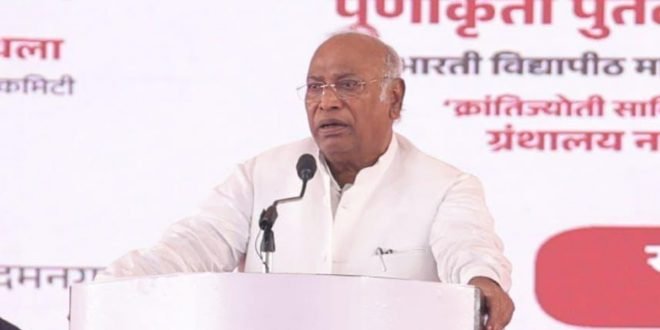 शिक्षक दिनाचे औचित्य साधून माजी मंत्री डॉ. पतंगराव कदम यांच्या ‘लोकतीर्थ’ या स्मारकाचे लोकार्पण व पूर्णाकृती पुतळ्याच्या अनावरणाचा कार्यक्रम सांगली जिल्ह्यातील वांगी येथे झाला, या कार्यक्रमात खर्गे बोलत होते.