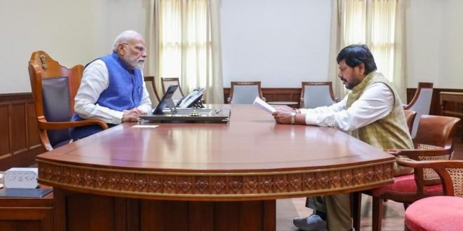 महाबोधी महाविहारप्रकरणी राज्यमंत्री रामदास आठवले भेटले पंतप्रधान मोदींना बौद्धांच्या ताब्यात देण्याच्या देण्याची केली मागणी