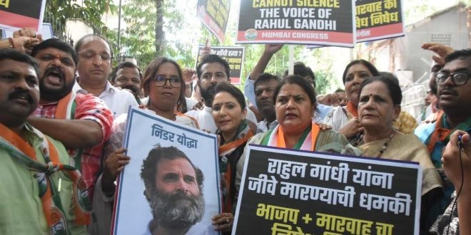 विरोधी पक्षनेते खासदार राहुल गांधी यांना जीवे मारण्याची धमकी देणा-या भाजपाच्या दिल्लीतील माजी आमदार तरविंदरसिंह मारवा व भाजपा विरोधात मुंबई काँग्रेसने विविध ठिकाणी आंदोलन करुन भाजपाचा निषेध केला. मुंबई काँग्रेस अध्यक्ष खासदार वर्षा गायकवाड यांनीही आंदोलनात भाग घेऊन भाजपावर तोफ डागली.