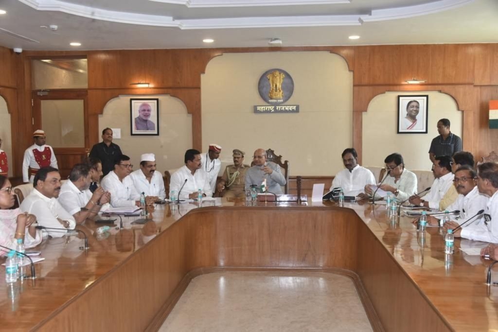 महाविकास आघाडीच्या शिष्टमंडळाने आज राज्यपाल रमेश बैस यांची राजभवनभर भेट घेऊन निवेदन दिले. यावेळी काँग्रेसचे प्रदेशाध्यक्ष नाना पटोले, विधिमंडळ काँग्रेस पक्षाचे नेते बाळासाहेब थोरात, विरोधी पक्षनेते विजय वडेट्टीवार, माजी मुख्यमंत्री व काँग्रेस वर्किंग कमिटीचे सदस्य अशोक चव्हाण, पृथ्वीराज चव्हाण, राष्ट्रवादी काँग्रेसचे प्रदेशाध्यक्ष जयंत पाटील, विधान परिषदेतील विरोधी पक्षनेते अंबादास दानवे, माजी मंत्री डॉ. नितीन राऊत, राजेश टोपे, मुंबई काँग्रेसच्या अध्यक्ष आ. वर्षा गायकवाड, प्रदेश कार्याध्यक्ष नसीम खान, बसवराज पाटील, प्रणिती शिंदे, शिवसेना आमदार रवींद्र वायकर, आमदार सुनील प्रभू, प्रदेश सरचिटणीस प्रमोद मोरे, देवानंद पवार आदी उपस्थित होते.