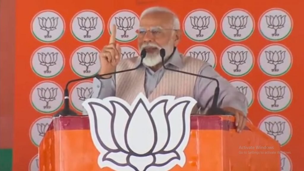 भ्रष्टाचाऱ्यांना वाचवल्याबद्दल भारत आघाडीवर आरोप करत पंतप्रधान मोदी म्हणाले, “भाजपा एका ध्येयाने मिशनने चालत आहे, तर काँग्रेस कमिशन मिळवण्यासाठी काम करत आहे.” मिशनचे तपशीलवार वर्णन करताना, नरेंद्र मोदी यांनी राम मंदिराचे बांधकाम, कलम ३७० रद्द करणे आणि तिहेरी तलाक विरोधातील कायद्याचा उल्लेख केला.