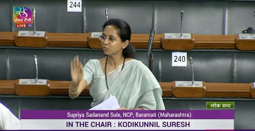 लोकसभेत जीएसटी विधेयक आणि पीएमएलए कायद्यातील तरतूदींवरून लोकसभेत चर्चा सुरु होती. यावेळी राष्ट्रवादीच्या खासदार सुप्रिया सुळे यांनी केंद्रीय अर्थ राज्यमंत्री भागवत कराड यांना चांगलेच कोंडीत पकडल्याचे दृष्य पहायला मिळाले, भागवत कराड माझ्या राज्यातून येतात असं म्हणत सुप्रिया सुळे यांनी जीएसटीबाबत काही त्रुटी असेल तर तुम्ही तातडीने त्या व्यक्तीला तुरुंगात टाकण्यावर आमचा आक्षेप आहे. तसेच तुमच्या अर्थविषयक विधेयकात पान क्रमांक ६ वर चूका असल्याची बाब निदर्शनास आणत आपण माणसे आहोत चूक माणसाकडून होते आपण देव थोडेच आहोत असे सांगत चांगलेच कोंडीत पकडले.