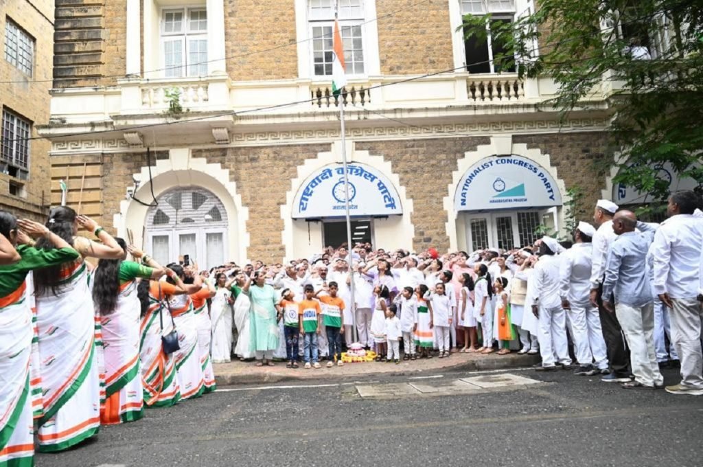 आज भारताच्या ७७ व्या स्वातंत्र्यदिनानिमित्त राष्ट्रवादी काँग्रेसच्या प्रदेश कार्यालयात कार्यकारी अध्यक्ष तथा खासदार सुप्रिया सुळे यांच्या हस्ते ध्वजारोहण करण्यात आले आहे यावेळी राष्ट्रीय सरचिटणीस तथा आमदार जितेंद्र आव्हाड, महिला प्रदेश अध्यक्ष विद्याताई चव्हाण मुंबई विभाग कार्याध्यक्ष राखी जाधव यांच्यासह सेवा दलाचे प्रमुख पदाधिकारी आणि राष्ट्रवादी काँग्रेसचे कार्यकर्ते उपस्थित होते.