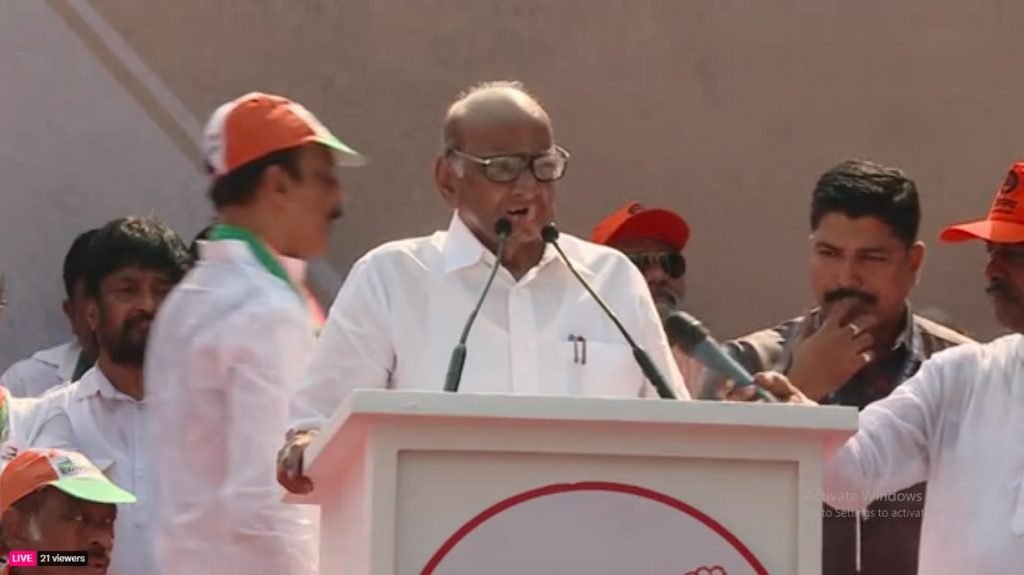 राज्यपाल भगतसिंह कोश्यारी आणि भाजपा व शिंदे गटाच्या काही नेत्यांनी महाराष्ट्रातील महापुरुषांबाबत केलेल्या आक्षेपार्ह विधानांच्या पार्श्वभूमीवर महाविकास आघाडीने आज मुंबईत ‘महामोर्चा’चं आयोजन केले. या मोर्चाला शिवसेना, काँग्रेस आणि राष्ट्रवादी काँग्रेसचे अनेक बडे नेते, पदाधिकारी आणि लाखो कार्यकर्ते उपस्थित आहेत. यावेळी राष्ट्रवादी काँग्रेसचे अध्यक्ष शरद पवार यांनी सभेला संबोधित करताना केंद्र सरकारला थेट इशारा दिला.