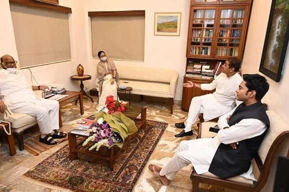 पश्चिम बंगालच्या मुख्यमंत्री ममता बँनर्जी या तीन दिवसाच्या मुंबई दौऱ्यावर आल्या असून काल शिवसेना प्रवक्ते खा.संजय राऊत आणि मुख्यमंत्री उध्दव ठाकरे यांचे सुपुत्र तथा राज्याचे पर्यावरण मंत्री आदित्य ठाकरे यांची भेट घेतल्यानंतर आज राष्ट्रवादी काँग्रेसचे सर्वेसर्वा शरद पवार यांची त्यांच्या सिल्व्हर ओक या निवासस्थानी भेट घेतली. यावेळी राष्ट्रवादी काँग्रेसचे अनेक नेते उपस्थित होते.