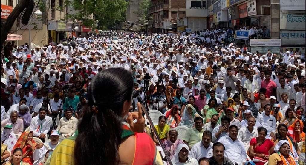 बारामतीच्या राष्ट्रवादी काँग्रेस पक्षाच्या उमेदवार आणि पक्षाच्या नेत्या खासदार सुप्रियाताई सुळे यांनी आज उमेदवारी अर्ज दाखल केला. त्यानंतर झालेल्या जाहीर सभेत त्या बोलत होत्या. या सभेत भाजप, मोदी आणि फडणवीस यांचा चांगलाच समाचार घेतला.