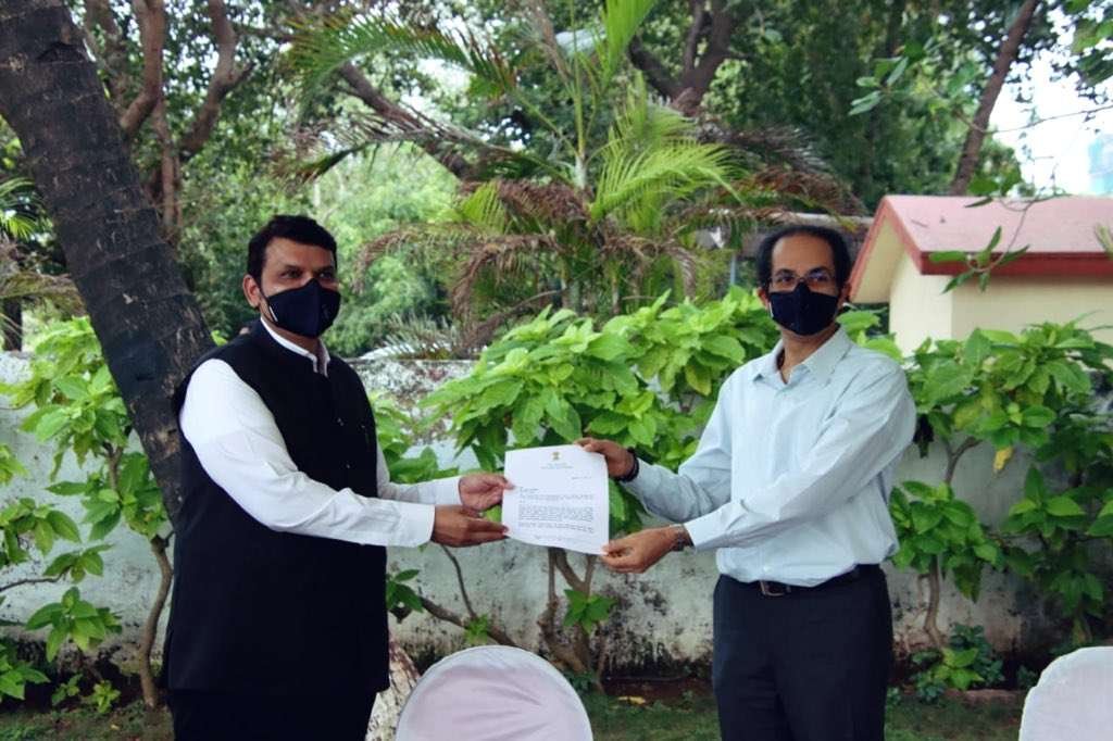 माजी मुख्यमंत्री आणि विधानसभेतील विरोधी पक्षनेते देवेंद्र फडणवीस यांनी आज राज्याचे मुख्यमंत्री उद्धव ठाकरे यांची मुंबईत भेट घेत कोकण दौर्याच्या अनुषंगाने तेथील अडचणींच्या १९ मागण्यांचे एक निवेदन त्यांना सादर केले.