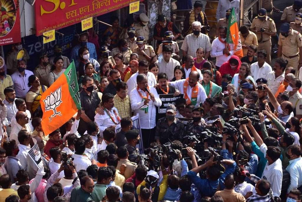दाऊद इब्राहिम या आंतरराष्ट्रीय दहशतवाद्याशी संबंधित मनी लाँडरिंग प्रकरणी ईडीने अटक केलेल्या नवाब मलिक यांनी मंत्रिपदाचा राजीनामा द्यावा या मागणीसाठी भारतीय जनता पार्टीचे प्रदेशाध्यक्ष चंद्रकांत पाटील यांच्या नेतृत्वाखाली मुंबईत आंदोलन करण्यात आले. नवाब मलिक यांनी राजीनामा देईपर्यंत भाजपाचे आंदोलन चालू राहील असा इशारा भाजपा प्रदेशाध्यक्ष चंद्रकांत पाटील यांनी दिला.