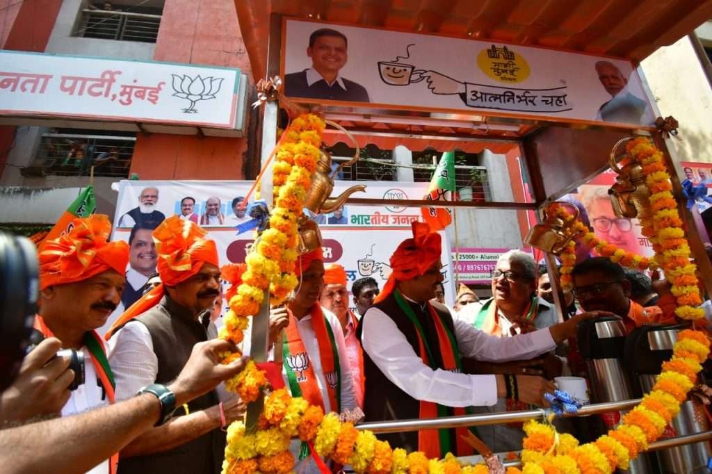 पंतप्रधान नरेंद्र मोदी यांच्या संकल्पनेतून साकारलेल्या ‘आत्मनिर्भर भारत’च्या माध्यमातून मुंबई भाजपा ओबीसी मोर्चातर्फे भाजपा स्थापना दिनानिमित्त ‘आत्मनिर्भर चहा’ स्टॉलचे उद्घाटन माजी मुख्यमंत्री व विधानसभेचे विरोधी पक्षनेते देवेंद्र फडणवीस यांनी केले. बेरोजगारांना उत्पन्नाचे साधन मिळावे यासाठी आत्मनिर्भर चहा स्टॉल महत्त्वपूर्ण ठरेल असे गौरवोद्गार विरोधी पक्षनेते देवेंद्र फडणवीस यांनी काढले.