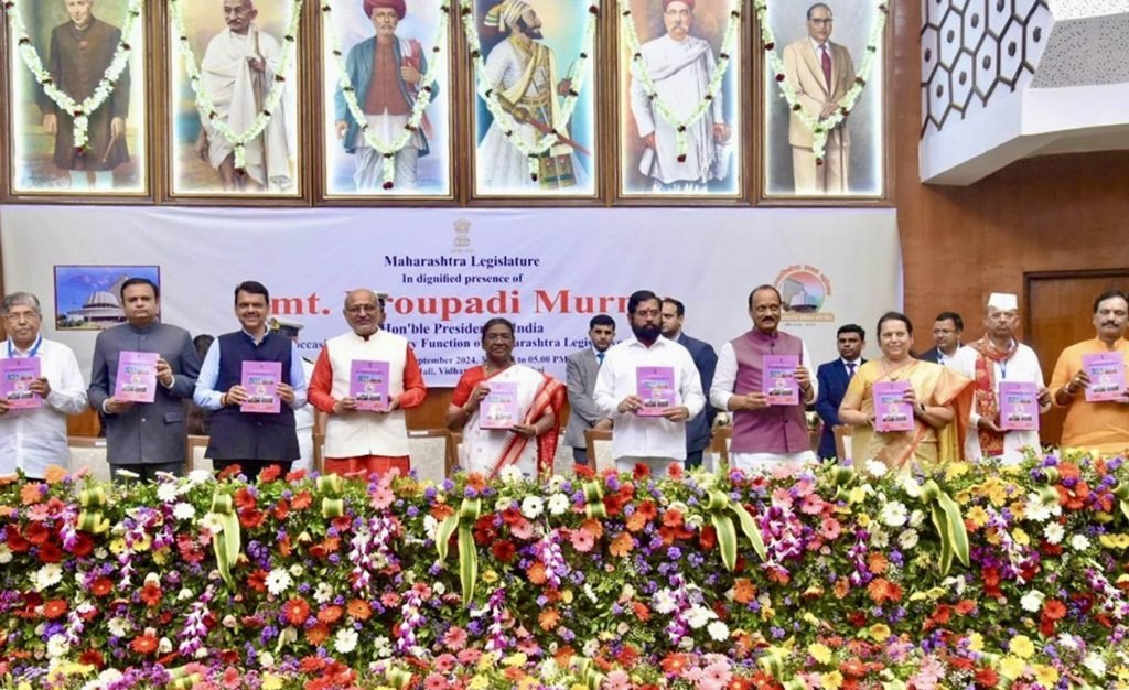 ‘महाराष्ट्र विधान परिषद शतक महोत्सवा’ निमित्त विधीमंडळाच्या मध्यवर्ती सभागृहात राष्ट्रपती द्रौपदी मुर्मू यांच्या हस्ते ‘ वरिष्ठ सभागृहाची आवश्यकता आणि महत्त्व ‘ या ग्रंथाचे प्रकाशन तसेच ‘उत्कृष्ट संसदपटू’ आणि ‘ उत्कृष्ट भाषण’ पुरस्कार वितरण कार्यक्रमाचे आयोजन करण्यात आले होते.