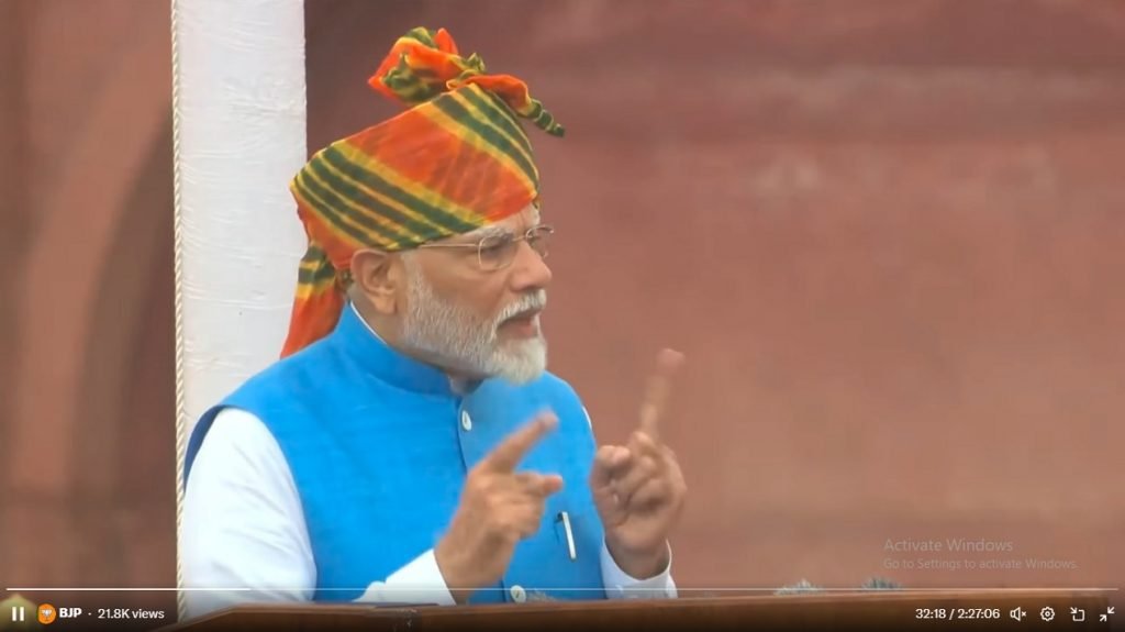 देशाच्या ७८ व्या स्वातंत्र्यदिना निमित्त नवी दिल्लीतील लाल किल्ल्यावर प्रथेप्रमाणे पंतप्रधानांनी ध्वजारोहणाचा कार्यक्रम पार पडला. त्यावेळी देशाला संबोधित करताना पंतप्रधान नरेंद्र मोदी हे बोलत होते.