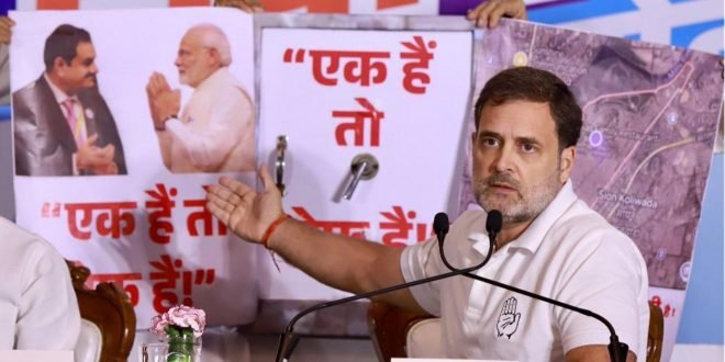 यावेळी राहुल गांधी म्हणाले की, मुंबईतील धारावी ही लघु व मध्यम उद्योगाचे हब आहे. हे हब बंद करुन धारावी अदानीच्या घशात घालण्यासाठी सर्व सरकारी यंत्रणा कामाला लागली आहे. हा फक्त धारावीच्या जमिनीपुरताच मुद्दा नसून मुंबई, मुंबईचे पर्यावरण यांच्याशीही संबंधीत आहे. देशातील सर्व विमानतळ, संरक्षण साहित्य बनवण्याचे काम, बंदरे, उर्जा निर्मीती प्रकल्प सर्वकाही एकाच व्यक्तीच्या हातात देण्यासाठी भाजपा सरकार काम करत आहे. भाजपाची नजर मुंबई व महाराष्ट्राच्या संपत्तीवर असून पंतप्रधान नरेंद्र मोदी यांच्या पाठिंब्याशिवाय हे होणे शक्य नाही, असा हल्लाबोल करत महाविकास आघाडीचे सरकार आल्यानंतर धारावीकरांच्या इच्छा अपेक्षानुसार त्यांचे हित जोपासत हा प्रकल्प राबविला जाणार असल्याचेही यावेळी सांगितले.