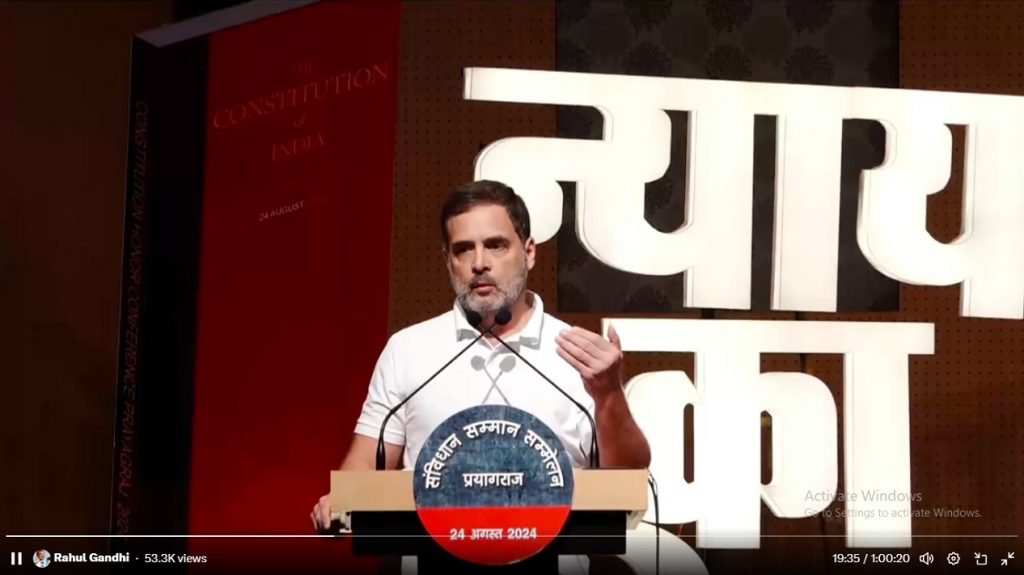 कोल्हापुरातील संविधान सन्मान संमेलनात खासदार राहुल गांधी बोलत होते.