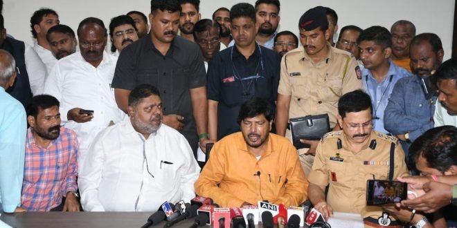 बदलापूर मधील अत्यंत लहानग्या मुलींवरील अत्याचाराची घटना महाराष्ट्राला मान खाली घालायला लावणारी आहे.मानवतेला काळीमा फासणाऱ्या या घटनेच्या निषेधार्थ उत्स्फूर्त आंदोलन करणाऱ्या बदलापूरवासियांवर दाखल झालेले गुन्हे रद्द करावेत. बदलापूर मधील त्या आंदोलकांना अटक करू नये अशी आपली मागणी असून त्यासाठी आपण लवकरच मुख्यमंत्री एकनाथ शिंदे यांची भेट घेणार आहोत अशी माहिती रिपब्लिकन पक्षाचे राष्ट्रीय अध्यक्ष केंद्रीय सामाजिक न्याय राज्यमंत्री रामदास आठवले यांनी दिली.