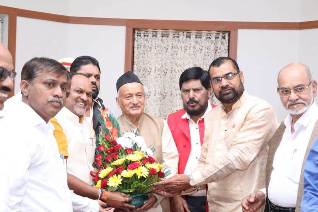 राज्यपाल कोश्यारी यांना भेटण्यासाठी रिपाईच्यावतीने केंद्रीय राज्यमंत्री रामदास आठवले, रासपचे महादेव जानकर, रयत शेतकरी संघटनेचे सदाभाऊ खोत आणि शिवसंग्राम संघटनेचे संदीप पाटील यांचे शिष्टमंडळ आज सकाळी भेटीस गेले होते.