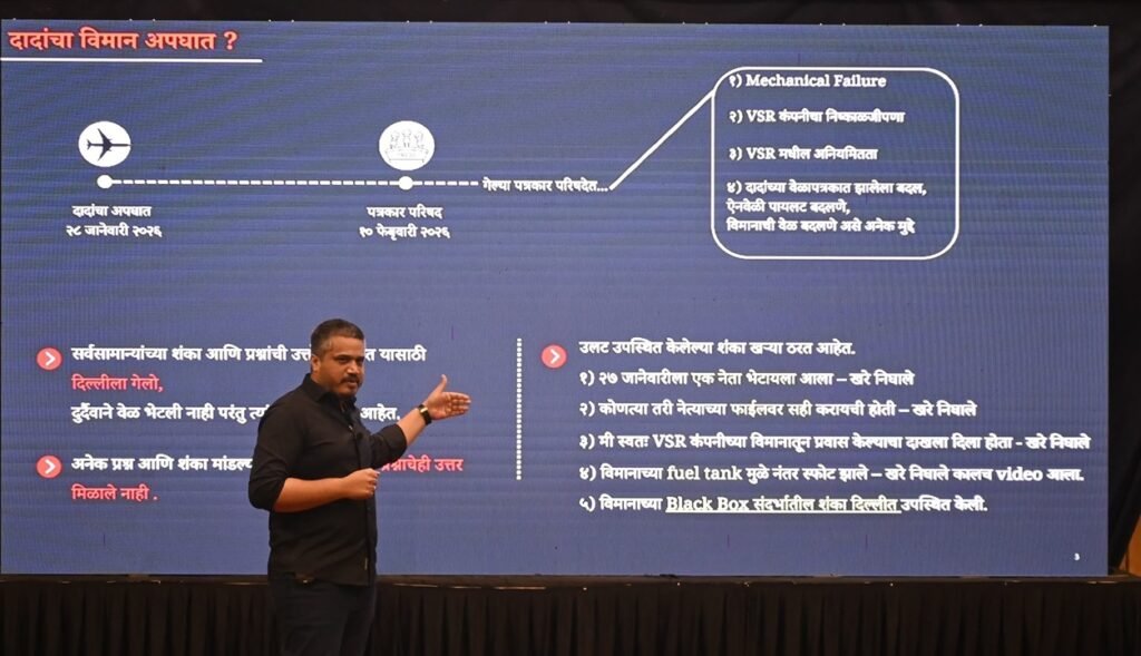 पुढे बोलताना रोहित पवार म्हणाले की,एखादा बॉल जर मातीत पडला तर तो कमी आदळतो, पण तो टणक रस्त्यावर पडला, जास्त आदळू टप्पे घेतो. आपण जर अपघात स्थळी पाहिलं तर अजित दादाचं जे विमान होते, कडक सरफेसवर पडलं, रनवेवर पडलं नव्हतं. तर एका साईडला पडलं होतं. त्यामुळे ते जोरात आदळलं. आता त्यांच्या विमानाचा स्फोट का झाला याबद्दल शंका घेतली जात, त्याचं मुख्य कारण, याबद्दल काही शंका व्यक्त करण्यात येत आहे. ती खरी ठरताना दिसत आहेत. अजित दादांच्या त्या विमानात जे फ्यूल टँक होते, ते अधिकचे होते. खरंतर विमानात टॉयलेटच्या बाजूला फ्यूल टँक असतात. त्याच्या बाजूला ब्लॅक बॉक्स असतो अशी माहिती रोहित पवार यांनी दिली.