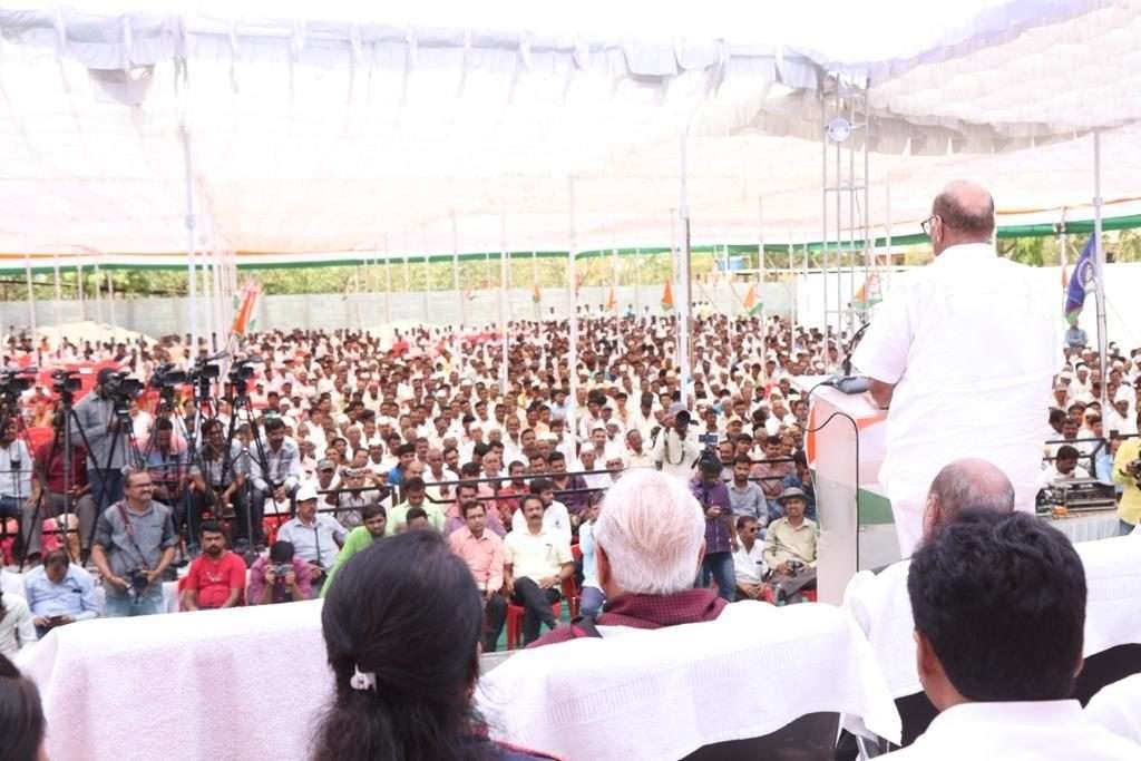 महाआघाडीचे नाशिकचे उमेदवार समीर भुजबळ यांच्या प्रचारार्थ त्यावेळी ते बोलत होते. या जाहीर सभेला शरद पवार यांच्याबरोबरच, माजी उपमुख्यमंत्री आमदार छगन भुजबळ, पक्षाचे ज्येष्ठ नेते आणि राष्ट्रीय सरचिटणीस डी. पी. त्रिपाठी, उमेदवार समीर भुजबळ, काँग्रेसचे नेते आणि माजी महसुलमंत्री बाळासाहेब थोरात, नाशिकचे जिल्हाध्यक्ष नानासाहेब पगार आदींसह महाआघाडीचे नेते व्यासपीठावर उपस्थित होते.