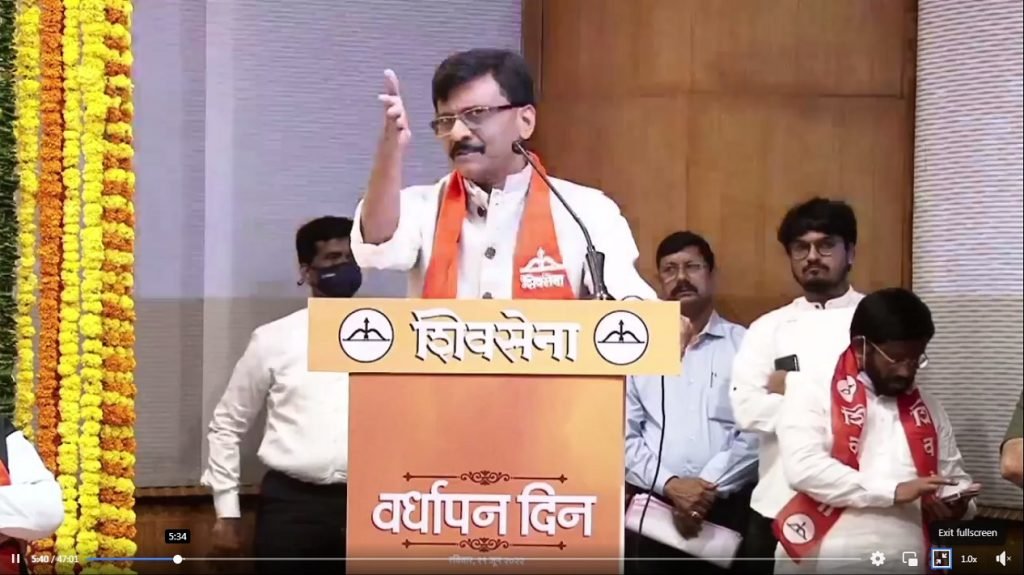 विधान परिषद निवडणूकीच्या १० जागांसाठी उद्या मतदान होत आहे. या पार्श्वभूमीवर शिवसेनेचे सर्व आमदार मुंबईतील हॉटेल वेस्ट इन मध्ये ठेवण्यात आले आहेत. त्यातच आज शिवसेनेच्या ५६वा वर्धापन दिन आज साजरा होत आहे. यापार्श्वभूमीवर शिवसेनेचे सर्व आमदार ठेवण्यात आलेल्या हॉटेल वेस्ट इनमध्येच शिवसेनेचा ५६ वा वर्धापन दिन साजरा करण्यात आला. यावेळी शिवसेनेचे प्रवक्ते संजय राऊत यांनी विरोधकांवर निशाणा साधत एक जागा जिंकली म्हणजे जग जिंकले असा होत नाही असा उपरोधिक टोला लगावत काही जणांना फारच घमंड आल्याचा खोचक टोलाही त्यांनी लगावला.