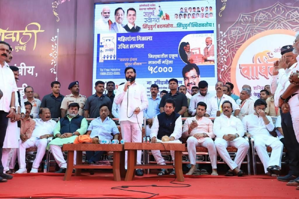 आंगणेवाडी येथील श्री देवी भराडी मातेचे दर्शन मुख्यमंत्री शिंदे यांनी आज घेतले. यानंतर झालेल्या कार्याक्रमात ते बोलत होते. यावेळी केंद्रीय सूक्ष्म, लघु व मध्यम उद्योग मंत्री नारायण राणे, राज्याचे उद्योग मंत्री उदय सामंत, शालेय शिक्षण व मराठी भाषा मंत्री दीपक केसरकर, खासदार डॉ. श्रीकांत शिंदे, आमदार कालीदास कोळंबकर, आमदार नितेश राणे, माजी खासदार निलेश राणे, माजी आमदार रविंद्र फाटक, राजन तेली आदी उपस्थित होते.