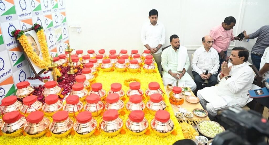 पक्ष कार्यालयात दादांच्या अस्थी कलश पूजनासाठी युवा नेते पार्थ पवार हेही उपस्थित होते.