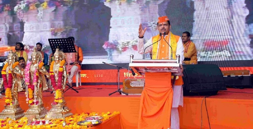 अयोध्या येथे पंतप्रधान नरेंद्र मोदी यांच्या हस्ते राम मंदिराचे लोकार्पण होवून गर्भगृहात राम लल्ला विराजमान होणाऱ्या क्षणाचे साक्षीदार होत असल्याचा अभिमान आहे. हा क्षण रामनगर येथील राम मंदिराच्या परिसरात लावण्यात आलेल्या भव्य स्क्रीनवर बघण्यासाठी फडणवीस उपस्थित होते. या सोहळ्यानिमित्त आयोजित कार्यक्रमात मार्गदर्शन करताना ते बोलत होते.