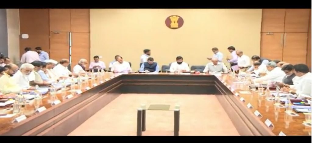 मुख्यमंत्री @mieknathshinde यांच्या अध्यक्षतेखाली #मंत्रिमंडळबैठक झाली. बैठकीस उपमुख्यमंत्री @Dev_Fadnavis , उपमुख्यमंत्री @AjitPawarSpeaks उपस्थित होते. या बैठकीत नवीन मंत्रिमंडळ सदस्यांचे स्वागत करण्यात आले. pic.twitter.com/W7Hr8q5qvy