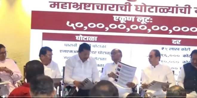 आगामी विधानसभा निवडणूकीच्या पार्श्वभूमीवर महायुती सरकारला टक्कर देण्यासाठी मविआ अर्थात महाविकास आघाडी सरकारकडूनही जय्यत तयारी करण्यात येत आहे. या तयारीची माहिती देण्यासाठी आज महाविकास आघाडीच्यावतीने आज पत्रकार परिषद घेण्यात आली. महायुती सरकारमधील गद्दारांचा पंचनामा यावेळी महाविकास आघाडीकडून जाहीर करण्यात आला. तसेच या गद्दारांच्या विरोधातील आरोपपत्रही यावेळी ठेवले. हे सगळं जनतेच्या दरबारात घेऊन जाणार असल्याचेही यावेळी महाविकास आघाडीच्या नेत्यांनी सांगितले.