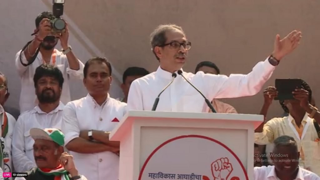 महाविकास आघाडीचा महामोर्चा सीएसटी येथे पोहोचल्यानंतर झालेल्या सभेत शिवसेना पक्षप्रमुख उध्दव ठाकरे यांनी राज्यपाल, भाजपा आणि शिंदे-फडणवीस सरकारवर टीकेची झोड उठविली.