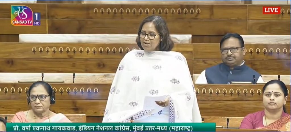 मुंबईतील गावठाणे आणि कोळीवाडे हे मुंबईच्या अस्तित्वाचे आणि सांस्कृतिक वारशाचे अविभाज्य भाग आहेत.मात्र, मुंबईचा तुकड्या-तुकड्याने लिलाव करण्याच्या कटात गुंतलेल्या या सरकारने भूमिपुत्रांवर घाला घातला आहे. गावठाणे आणि कोळीवाडे हे स्लम नाहीत असा स्पष्ट शासन निर्णय (GR) असूनही, त्यांना स्लम घोषित करून भूमिपुत्रांच्या हक्कांवर गदा आणण्याचे आणि या भागांमध्ये झोपडपट्टी पुनर्विकास योजना लागू करण्याचे प्रयत्न वारंवार होत आहेत. मुंबईच्या भूमिपुत्रांना झोपडपट्टीवासी कसे म्हणता येईल? कोळीवाडे व गावठाणे यांना झोपडपट्टी घोषीत करणे तात्काळ रद्द करावे आणि मुंबईतील सर्व कोळीवाडे व गावठाणे यांचे सीमांकन व मॅपिंग करावे, अशी मागणी मुंबई काँग्रेस अध्यक्ष खासदार वर्षा गायकवाड यांनी लोकसभेत केली.