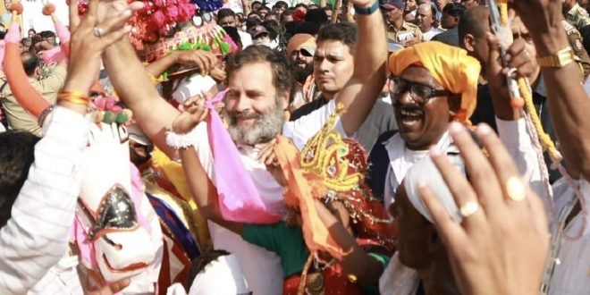 यावेळी आमदार कुणाल रोहिदास पाटील यांच्यातर्फे राहुल गांधी यांना चांदीची तलवार आणि आदिवासी फेटा भेट देऊन स्वागत करण्यात आले. यावेळी हजारोंचा समुदाय राहुलजींना अभिवादन करण्यासाठी उपस्थित होता.