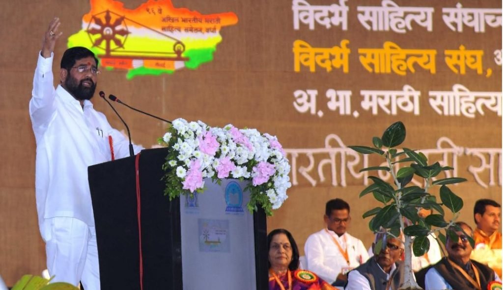 विदर्भ साहित्य संघाच्या शताब्दी वर्षानिमित्त येथील आचार्य विनोबा भावे सभा मंडपात प्राचार्य राम शेवाळकर व्यासपीठावर आयोजित या संमेलनाचे उद्घाटन मुख्यमंत्री शिंदे यांच्या हस्ते झाले, त्यावेळी ते बोलत होते. संमेलनाध्यक्ष न्या. नरेंद्र चपळगावकर, शालेय शिक्षण तथा मराठी भाषा मंत्री दीपक केसरकर, पूर्वाध्यक्ष भारत सासणे, स्वागताध्यक्ष, माजी खासदार दत्ता मेघे, साहित्य अकादमीचे माजी अध्यक्ष पद्मश्री डॉ. विश्वनाथ प्रसाद तिवारी, प्रसिद्ध हिंदी कवी डॉ. कुमार विश्वास, डॉ. डी. वाय. पाटील अभिमत विद्यापीठाचे कुलपती डॉ. पी. डी. पाटील, विदर्भ साहित्य संघाचे अध्यक्ष तथा आयोजन समितीचे कार्याध्यक्ष प्रदीप दाते आदी उपस्थित होते.