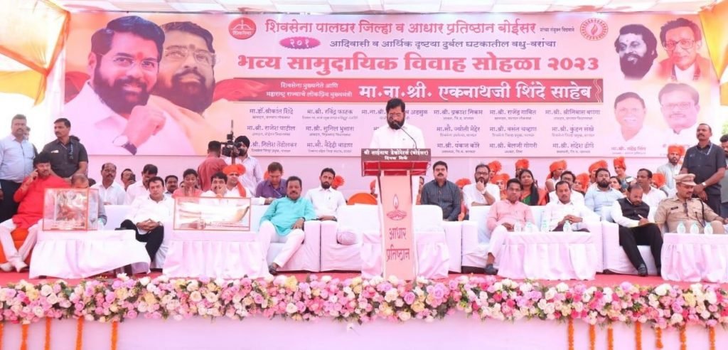 पालघर जिल्ह्यातील बोईसर येथे आयोजित सामुदायिक विवाह सोहळ्यात ते बोलत होते. यावेळी आमदार रवींद्र फाटक, राजेश पाटील, श्रीनिवास वनगा, जिल्हा परिषदेचे अध्यक्ष प्रकाश निकम, जिल्हाधिकारी गोविंद बोडके , जिल्हा पोलीस अधीक्षक बाळासाहेब पाटील आदी उपस्थित होते.