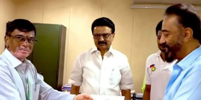 डिएमके DMK ने मक्कल नीधी मैयम यांना राज्यसभेची एक जागा दिल्याने, त्याचे संस्थापक आणि अभिनेते कमल हसन यांना यापूर्वी संसदेच्या उच्च सभागृहासाठी उमेदवार म्हणून नाव देण्यात आले होते.