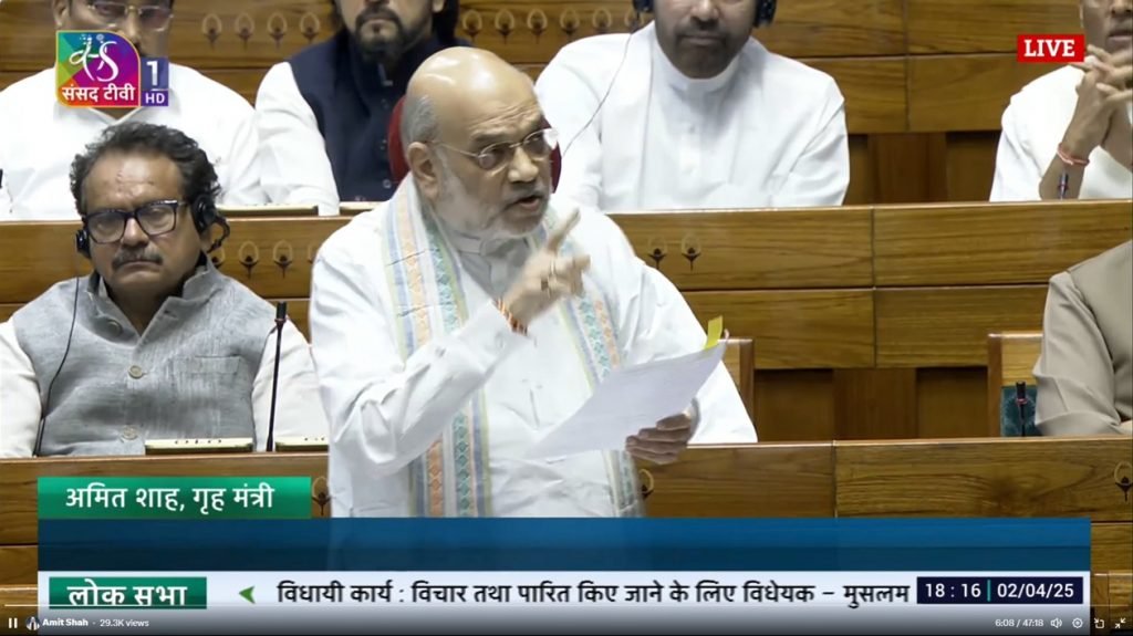 केंद्रीय गृहमंत्री अमित शाह यांनी वक्फ (दुरुस्ती) विधेयकाच्या समर्थनार्थ कनिष्ठ सभागृहात बोलताना म्हटले की, “विरोधी पक्षाचे खासदार नकळत किंवा राजकीय कारणांसाठी चुकीची माहिती पसरवत आहेत. वक्फ म्हणजे अल्लाहच्या नावाने धार्मिक धर्मादाय संस्थांसाठी दिले जाणारे दान – एक अपरिवर्तनीय धर्मादाय देणगी. देणगी केवळ स्वतःच्या मालमत्तेतून दिली जाऊ शकते, सरकारी जमिनीतून नाही.”