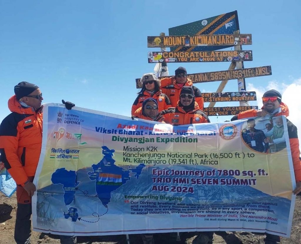 देशाच्या 78 व्या स्वातंत्र्य दिनाच्या पार्श्वभूमीवर संरक्षण मंत्रालयाच्या अखत्यारीतील हिमालयीन गिर्यारोहण संस्थेच्या दिव्यांगजन मोहिम चमूने आफ्रिकेतील सर्वात उंच शिखर असलेल्या किलिमंजारो पर्वतावरील उहुरु शिखरावर 7800 चौरस फूटाचा भारतीय राष्ट्रीय ध्वज फडकवला. या चमूने त्यांचा प्रवास बेस कॅम्प पासून सुरू केला आणि 15500 फुट उंचीवरील कीबु हट इथे 7 ऑगस्टला पोहोचले. तिथे त्यांनी 7800 चौरस फुटाचा राष्ट्रीय ध्वज जमीनीवर जाळे, दोर आणि खिळ्यांच्या सहाय्याने प्रदर्शित केला.