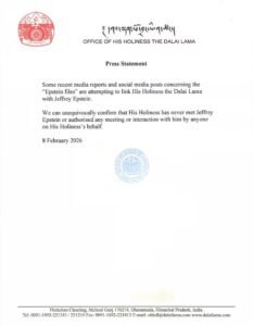 ८ फेब्रुवारी रोजी जारी केलेल्या एका प्रसिद्धीपत्रकात कार्यालयाने म्हटले आहे: “‘एपस्टीन फाइल्स’ संबंधी काही अलीकडील माध्यमांतील अहवाल आणि सोशल मीडिया पोस्ट्स परमपूज्य दलाई लामा यांना जेफ्री एपस्टीनशी जोडण्याचा प्रयत्न करत आहेत.”