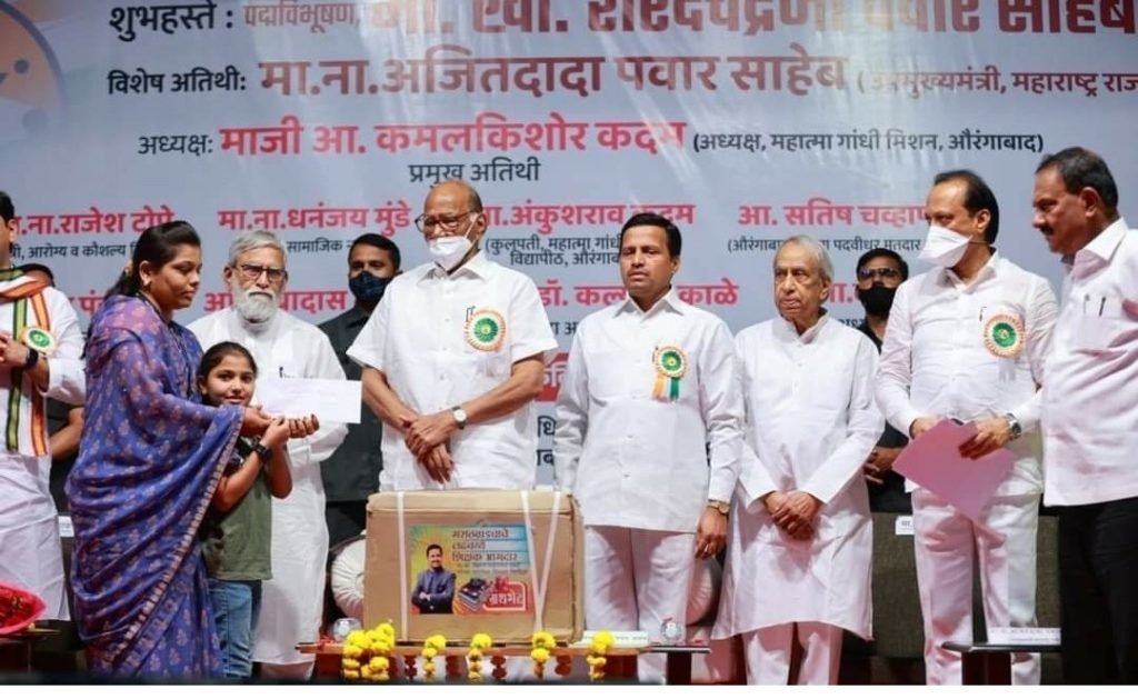 या कार्यक्रमाच्या अध्यक्षस्थानी एमजीएमचे अध्यक्ष कमलकिशोर कदम होते तर, यावेळी मंत्री अजित पवार, राजेश टोपे, धनंजय मुंडे, एमजीएमचे विश्वस्त अंकुशराव कदम, आमदार सतीश चव्हाण, अंबादास दानवे, माजी आमदार अमरसिंह पंडीत, डॉ. कल्याण काळे, कैलास पाटील यांची उपस्थिती होती. महाराष्ट्र अंडर प्रिव्हिलेज्ड् टिचर्स असोसिएशन (मुप्टा) चे सहावे रौप्य महोत्सवी अधिवेशन तापडिया मैदानावर दुपारी होणार आहे. शरद पवार आणि अजित पवार यांच्यासोबतच कॅबिनेटमधील मंत्री असणारे राजेश टोपे, धनंजय मुंडे, राज्यमंत्री संजय बनसोडे, माजी खासदार फौजिया खान, आमदार सतीश चव्हाण, विक्रम काळे, अमरसिंह पंडित या कार्यक्रमाला उपस्थित राहणार आहे.