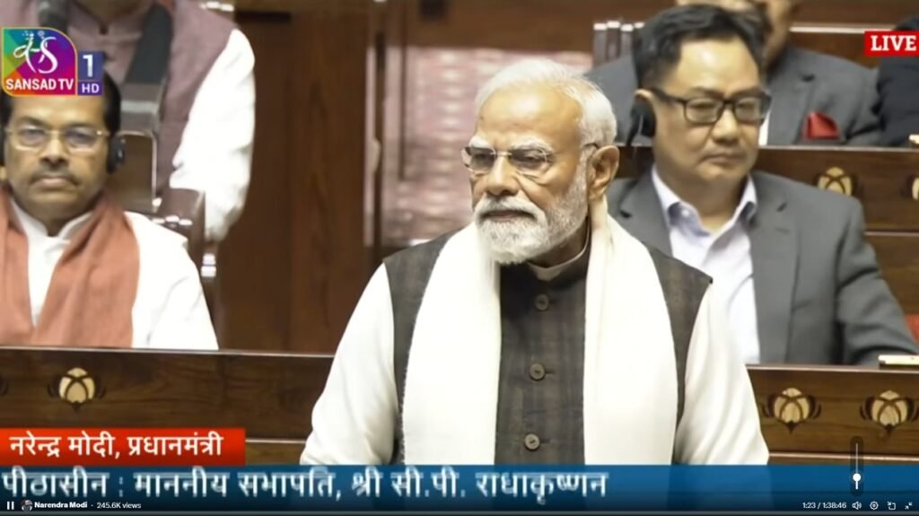 राज्यसभेत बोलताना पंतप्रधान मोदी म्हणाले की, “अकार्यक्षम शासना”खाली राहणाऱ्या लोकांना अनिश्चित भविष्याचा सामना करावा लागत आहे, तर सत्तेवर असलेले लोक केवळ राजकीय फायद्यांवर लक्ष केंद्रित करत आहेत. त्यांनी आरोप केला की, घुसखोरीमुळे विशेषतः आदिवासी समुदायांची उपजीविका, जमिनीचे हक्क आणि सुरक्षितता धोक्यात येत आहे आणि तरुण नागरिकांना संधींपासून वंचित ठेवले जात आहे, असा इशाराहीदिला.