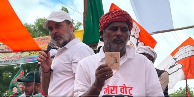 सभेला संबोधित करण्यापूर्वी, राहुल गांधी यांनी स्थानिक शेतकरी सुबोध कुमार यांना त्यांची कहाणी सांगण्यास सांगितले. त्यांनी राहुल गांधी यांना सांगितले की, त्यांचे नाव २०२४ च्या लोकसभा निवडणुकीत मतदान केले असले तरी मसुदा यादीतून काढून टाकण्यात आले आहे.