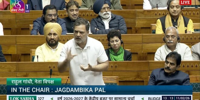 लोकसभेत अनेक दिवसांपासून सुरू असलेल्या गोंधळानंतर राहुल गांधी यांनी पंतप्रधान नरेंद्र मोदी यांच्या नेतृत्वाखालील केंद्र सरकारवर अमेरिकेसोबतच्या नुकत्याच झालेल्या व्यापार करारावरून हल्ला चढवला आणि सरकारला याची लाज वाटली पाहिजे असे म्हटले. त्यावर तीव्र हल्ला चढवत राहुल गांधी म्हणाले की, केंद्राने “भारत विकला”, तसेच अमेरिकन वस्तूंना प्रवेश देऊन सरकारने शेतकऱ्यांचे जीवनमान धोक्यात आणल्याचा आरोप केला.