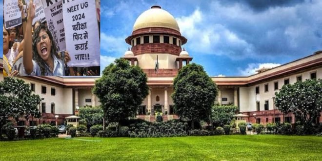 NEET-UG परिक्षा पेपर लिक प्रकरणी संपूर्ण परिक्षा रद्द करण्यासंदर्भात सर्वोच्च न्यायालयात याचिका दाखल करण्यात आली. अशा विविध अशा ३८ याचिकांवरील एकत्रित सुनावणी सर्वोच्च न्यायालयाकडून घेण्यात येत आहे. आज झालेल्या सुनावणी दरम्यान सर्वोच्च न्यायालयाने नॅशनल टेस्टिंग एजन्सी (NTA) ला NEET-UG 2024 मध्ये बसलेल्या सर्व विद्यार्थ्यांचे शहर आणि केंद्रनिहाय विद्यार्थ्यांची ओळख जाहिर न करता मिळालेले गुण एनटीएच्या वेबसाइटवर शनिवार दुपारपर्यंत अपलोड करण्याचे निर्देश दिले.