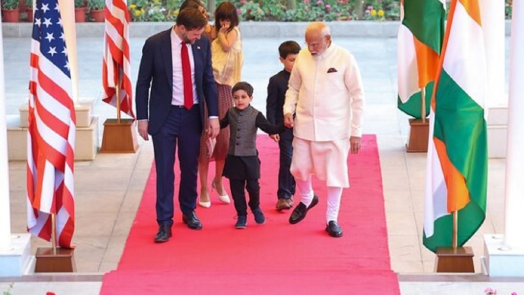 पंतप्रधान नरेंद्र मोदी यांनी सोमवारी अमेरिकेचे उपाध्यक्ष जे डी व्हान्स यांच्याशी नवी दिल्लीतील ७ लोक कल्याण मार्ग येथील त्यांच्या निवासस्थानी चर्चा केली. उपराष्ट्राध्यक्ष जे डी व्हान्स यांच्यासोबत त्यांची पत्नी आणि त्यांची तीन मुले – इवान, विवेक आणि मिराबेल होते.