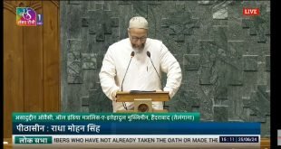 एआयएमआयएमचे अध्यक्ष आणि हैदराबादचे खासदार असदुद्दीन ओवेसी यांनी मंगळवारी १८ व्या लोकसभेचे सदस्य म्हणून शपथ घेतल्यानंतर केलेल्या वादग्रस्त घोषणेवर संसदे भाजपाच्या सदस्यांनी गोंधळ घातला. त्यामुळे असादुद्दीन ओवेसी यांचे ते वक्तव्य संसदेच्या कामकाजातून काढून टाकण्यात आले. असुदुद्दीन ओवेसी यांनी उर्दू भाषेत खासदारकीची शपथ घेतली. त्यांनंतर त्यांनी जय भिम, जय तेलंगणा, जय …